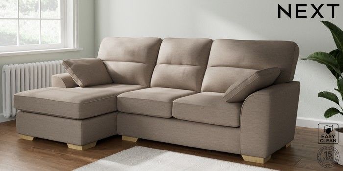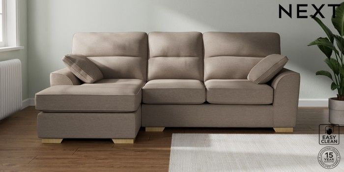 7.2.10 Stamford Highback Medium Sofa Chaise - Left Hand Fine Chenille Easy Clean Mid Taupe Brown Large Square Angle - Light | Made Click here to use our website with more accessibility support, for example screen readers