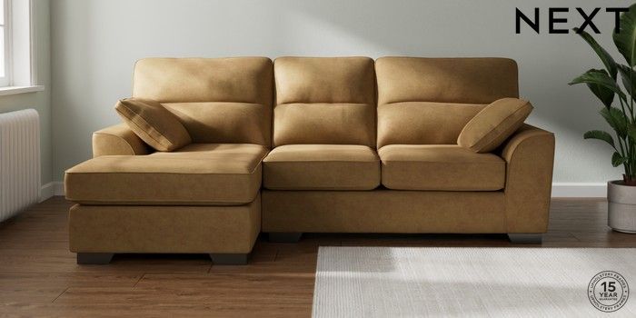 7.2.10 Stamford Highback Medium Sofa Chaise - Left Hand Luxe Chenille Honey Yellow Large Square Angle - Gunmetal | Made Click here to use our website with more accessibility support, for example screen readers