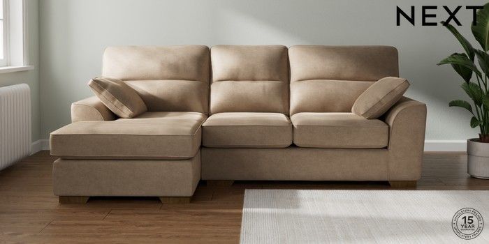 7.2.10 Stamford Highback Medium Sofa Chaise - Left Hand Luxe Chenille Mid Camel Beige Large Square Angle - Mid | Made Click here to use our website with more accessibility support, for example screen readers