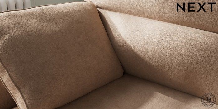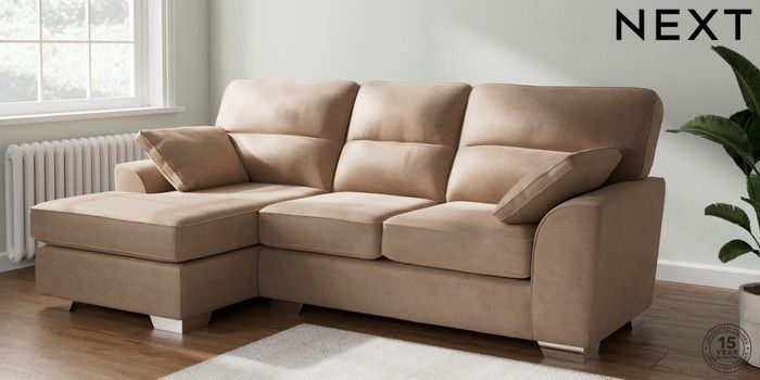 7.2.10 Stamford Highback Medium Sofa Chaise - Left Hand Luxe Chenille Mid Natural Large Square Angle - Chrome Metal | Made Click here to use our website with more accessibility support, for example screen readers