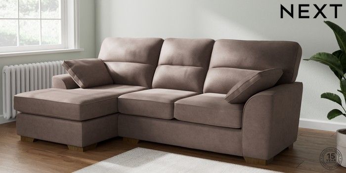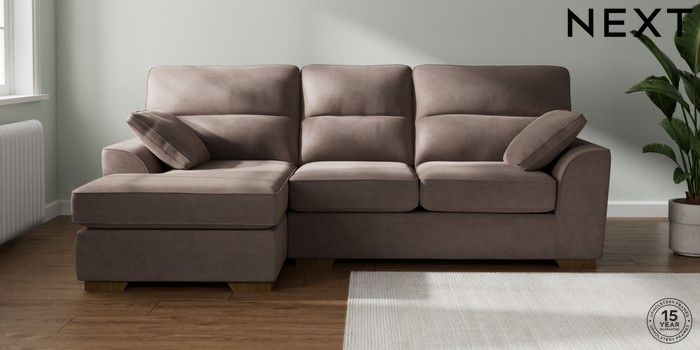 7.2.10 Stamford Highback Medium Sofa Chaise - Left Hand Luxe Chenille Mink Brown Large Square Angle - Mid | Made Click here to use our website with more accessibility support, for example screen readers