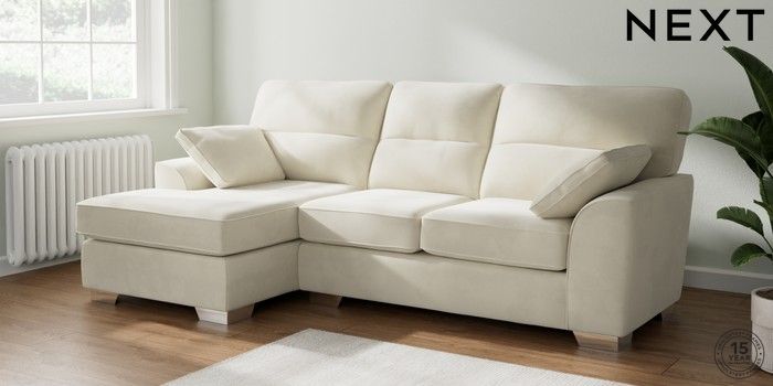 7.2.10 Stamford Highback Medium Sofa Chaise - Left Hand Luxe Chenille Oyster Large Square Angle - Chrome Metal | Made Click here to use our website with more accessibility support, for example screen readers