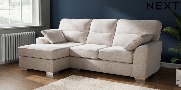 7.2.10 Stamford Highback Medium Sofa Chaise - Left Hand Multi Weave Oyster Large Square Angle - Chrome Metal | Made Click here to use our website with more accessibility support, for example screen readers