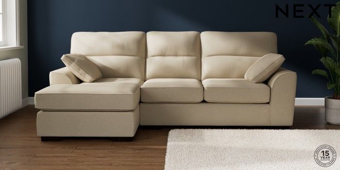 7.2.10 Stamford Highback Medium Sofa Chaise - Left Hand Natural Mix Light Natural Large Square Angle - Dark | Made Click here to use our website with more accessibility support, for example screen readers