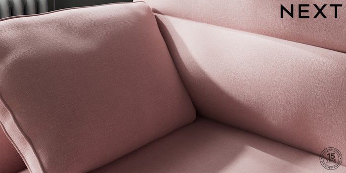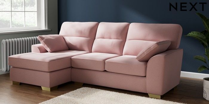 7.2.10 Stamford Highback Medium Sofa Chaise - Left Hand Natural Mix Light Rose Pink Large Square Angle - Brushed Brass | Made Click here to use our website with more accessibility support, for example screen readers