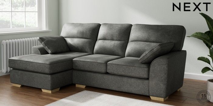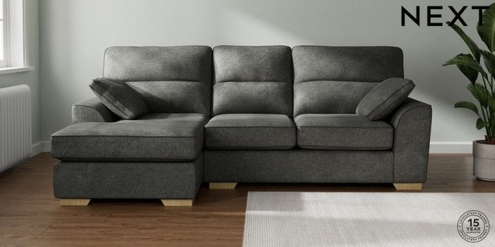 7.2.10 Stamford Highback Medium Sofa Chaise - Left Hand Plush Chenille Dark Grey Large Square Angle - Light | Made Click here to use our website with more accessibility support, for example screen readers