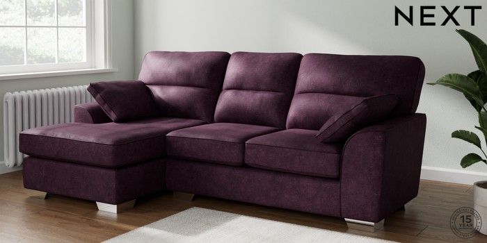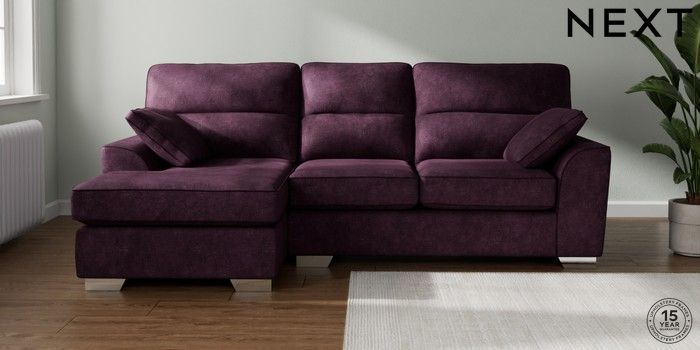 7.2.10 Stamford Highback Medium Sofa Chaise - Left Hand Plush Chenille Dark Plum Purple Large Square Angle - Chrome Metal | Made Click here to use our website with more accessibility support, for example screen readers