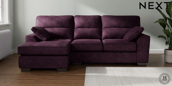 7.2.10 Stamford Highback Medium Sofa Chaise - Left Hand Plush Chenille Dark Plum Purple Large Square Angle - Gunmetal | Made Click here to use our website with more accessibility support, for example screen readers