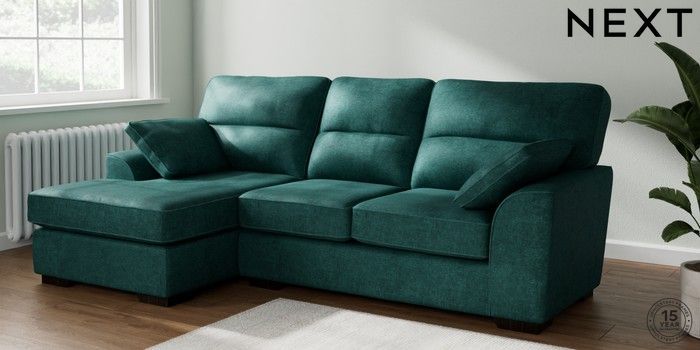 7.2.10 Stamford Highback Medium Sofa Chaise - Left Hand Plush Chenille Dark Teal Green Large Square Angle - Dark | Made Click here to use our website with more accessibility support, for example screen readers