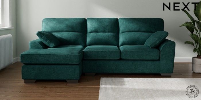 7.2.10 Stamford Highback Medium Sofa Chaise - Left Hand Plush Chenille Dark Teal Green Large Square Angle - Gunmetal | Made Click here to use our website with more accessibility support, for example screen readers