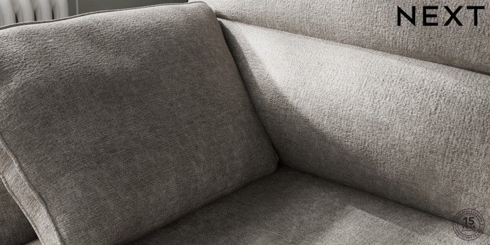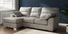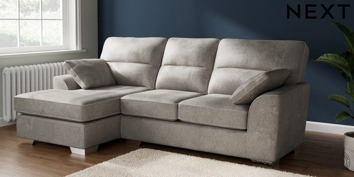 7.2.10 Stamford Highback Medium Sofa Chaise - Left Hand Plush Chenille Light Grey Large Square Angle - Chrome Metal | Made Click here to use our website with more accessibility support, for example screen readers