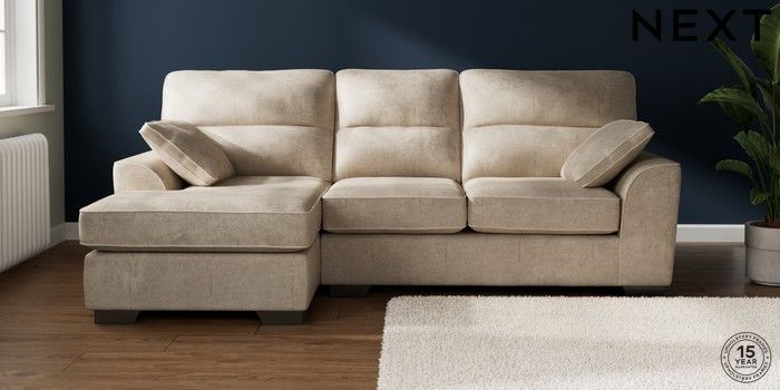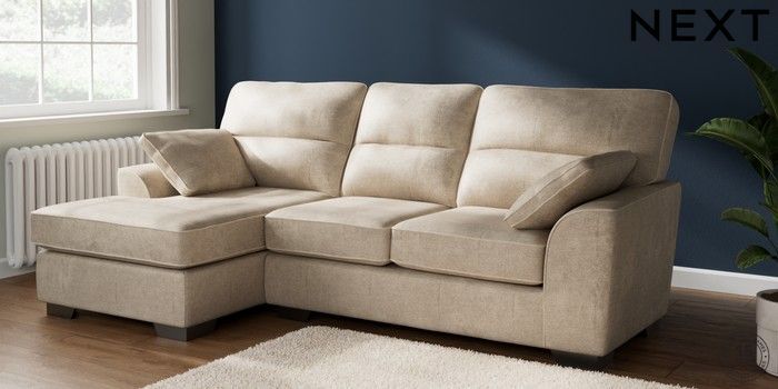 7.2.10 Stamford Highback Medium Sofa Chaise - Left Hand Plush Chenille Light Natural Large Square Angle - Gunmetal | Made Click here to use our website with more accessibility support, for example screen readers