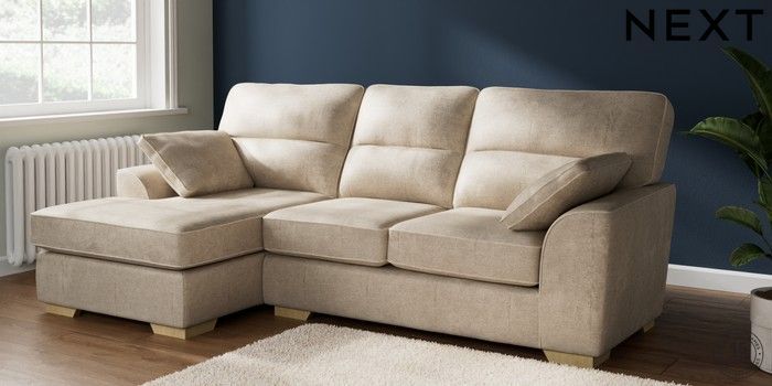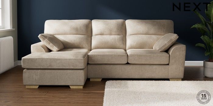 7.2.10 Stamford Highback Medium Sofa Chaise - Left Hand Plush Chenille Light Natural Large Square Angle - Light | Made Click here to use our website with more accessibility support, for example screen readers
