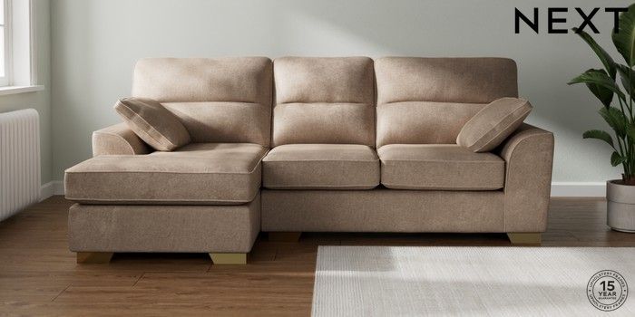 7.2.10 Stamford Highback Medium Sofa Chaise - Left Hand Plush Chenille Mid Natural Large Square Angle - Brushed Brass | Made Click here to use our website with more accessibility support, for example screen readers