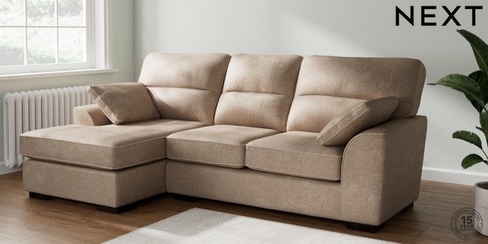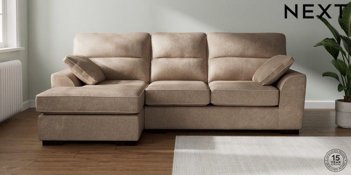 7.2.10 Stamford Highback Medium Sofa Chaise - Left Hand Plush Chenille Mid Natural Large Square Angle - Dark | Made Click here to use our website with more accessibility support, for example screen readers