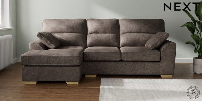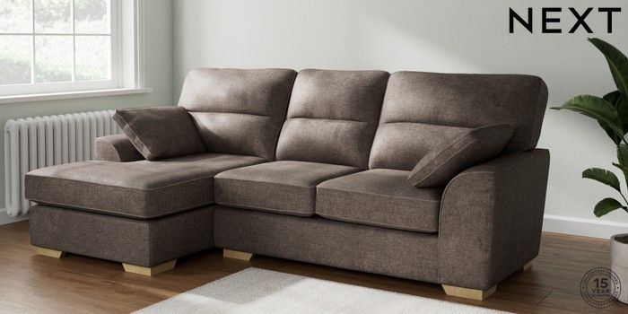7.2.10 Stamford Highback Medium Sofa Chaise - Left Hand Plush Chenille Mink Brown Large Square Angle - Light | Made Click here to use our website with more accessibility support, for example screen readers