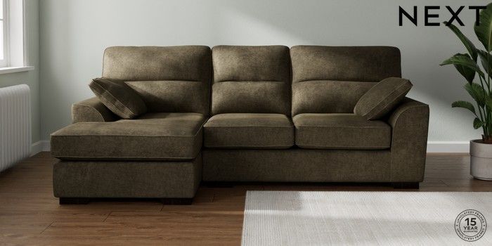7.2.10 Stamford Highback Medium Sofa Chaise - Left Hand Plush Chenille Moss Green Large Square Angle - Dark | Made Click here to use our website with more accessibility support, for example screen readers