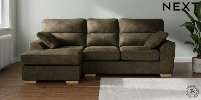 7.2.10 Stamford Highback Medium Sofa Chaise - Left Hand Plush Chenille Moss Green Large Square Angle - Light | Made Click here to use our website with more accessibility support, for example screen readers