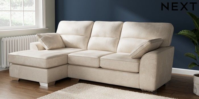 7.2.10 Stamford Highback Medium Sofa Chaise - Left Hand Plush Chenille Oyster Large Square Angle - Chrome Metal | Made Click here to use our website with more accessibility support, for example screen readers