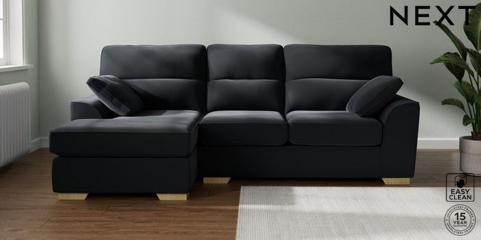 7.2.10 Stamford Highback Medium Sofa Chaise - Left Hand Plush Velvet Easy Clean Charcoal Grey Large Square Angle - Light | Made Click here to use our website with more accessibility support, for example screen readers