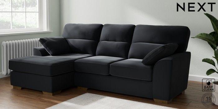 7.2.10 Stamford Highback Medium Sofa Chaise - Left Hand Plush Velvet Easy Clean Charcoal Grey Large Square Angle - Mid | Made Click here to use our website with more accessibility support, for example screen readers