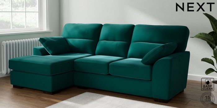 7.2.10 Stamford Highback Medium Sofa Chaise - Left Hand Plush Velvet Easy Clean Juniper Green Large Square Angle - Dark | Made Click here to use our website with more accessibility support, for example screen readers