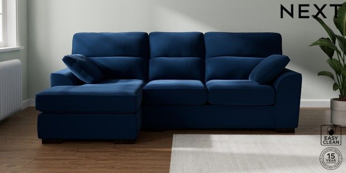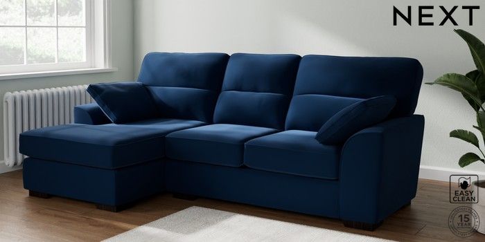 7.2.10 Stamford Highback Medium Sofa Chaise - Left Hand Plush Velvet Easy Clean Navy Blue Large Square Angle - Dark | Made Click here to use our website with more accessibility support, for example screen readers