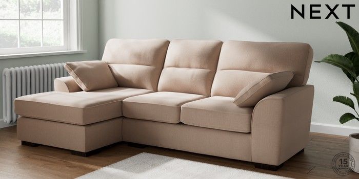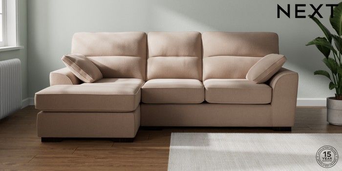 7.2.10 Stamford Highback Medium Sofa Chaise - Left Hand Relaxed Linen Look Mid Natural Large Square Angle - Dark | Made Click here to use our website with more accessibility support, for example screen readers