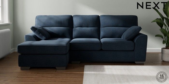 7.2.10 Stamford Highback Medium Sofa Chaise - Left Hand Ripple Chenille Dark Blue Large Square Angle - Gunmetal | Made Click here to use our website with more accessibility support, for example screen readers