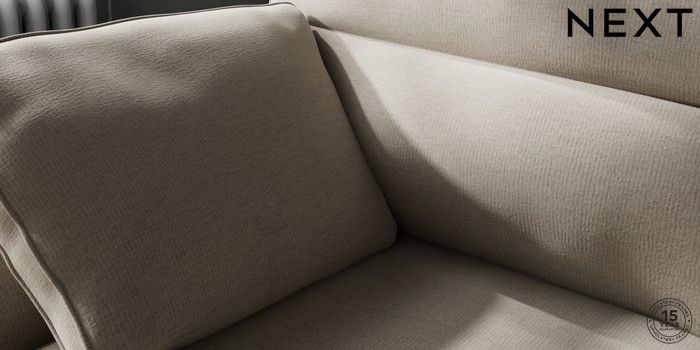 7.2.10 Stamford Highback Medium Sofa Chaise - Left Hand Ripple Chenille Light Natural Large Square Angle - Chrome Metal | Made Click here to use our website with more accessibility support, for example screen readers