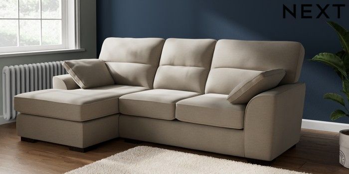 7.2.10 Stamford Highback Medium Sofa Chaise - Left Hand Ripple Chenille Light Natural Large Square Angle - Dark | Made Click here to use our website with more accessibility support, for example screen readers