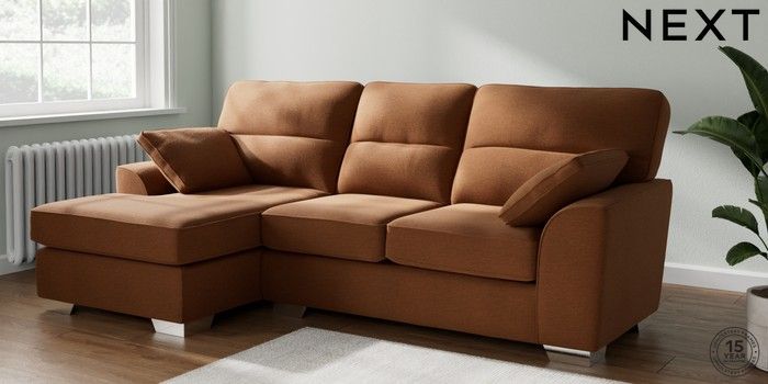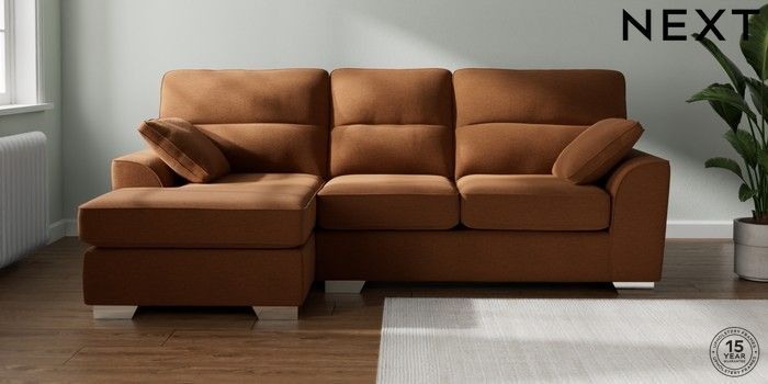 7.2.10 Stamford Highback Medium Sofa Chaise - Left Hand Ripple Chenille Mid Rust Brown Large Square Angle - Chrome Metal | Made Click here to use our website with more accessibility support, for example screen readers