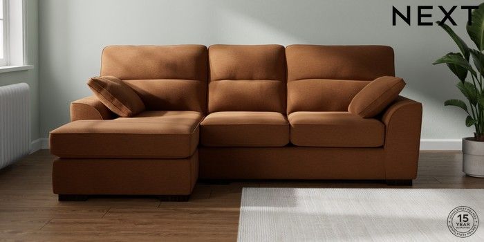 7.2.10 Stamford Highback Medium Sofa Chaise - Left Hand Ripple Chenille Mid Rust Brown Large Square Angle - Dark | Made Click here to use our website with more accessibility support, for example screen readers