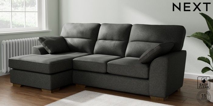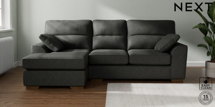 7.2.10 Stamford Highback Medium Sofa Chaise - Left Hand Tweedy Blend Easy Clean Charcoal Grey Large Square Angle - Mid | Made Click here to use our website with more accessibility support, for example screen readers