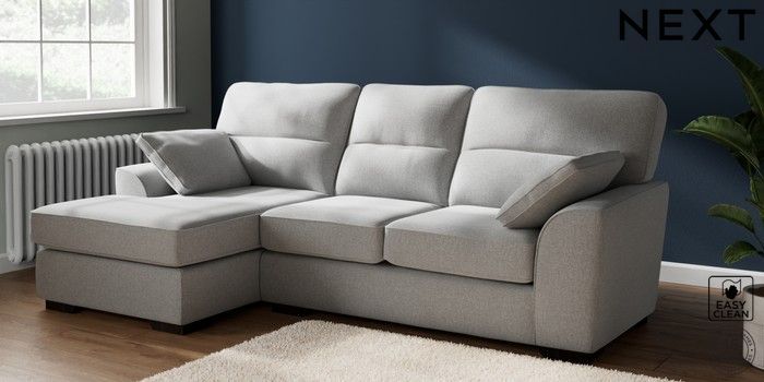 7.2.10 Stamford Highback Medium Sofa Chaise - Left Hand Tweedy Blend Easy Clean Light Silver Grey Large Square Angle - Dark | Made Click here to use our website with more accessibility support, for example screen readers