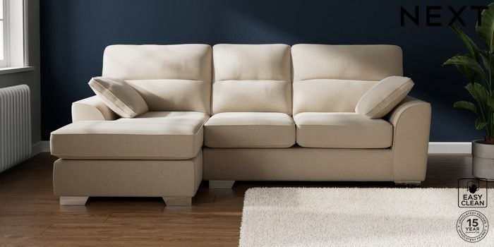 7.2.10 Stamford Highback Medium Sofa Chaise - Left Hand Tweedy Blend Easy Clean Oyster Large Square Angle - Chrome Metal | Made Click here to use our website with more accessibility support, for example screen readers