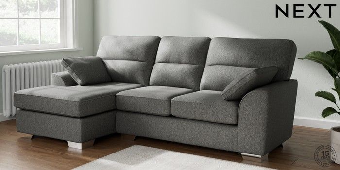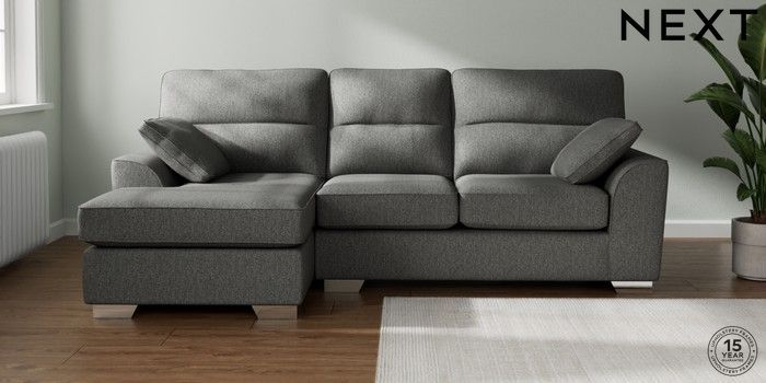 7.2.10 Stamford Highback Medium Sofa Chaise - Left Hand Tweedy Chenille Dark Grey Large Square Angle - Chrome Metal | Made Click here to use our website with more accessibility support, for example screen readers