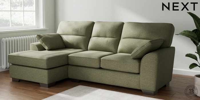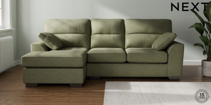 7.2.10 Stamford Highback Medium Sofa Chaise - Left Hand Tweedy Chenille Mid Moss Green Large Square Angle - Gunmetal | Made Click here to use our website with more accessibility support, for example screen readers