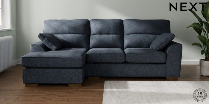 7.2.10 Stamford Highback Medium Sofa Chaise - Left Hand Tweedy Chenille Navy Blue Large Square Angle - Mid | Made Click here to use our website with more accessibility support, for example screen readers