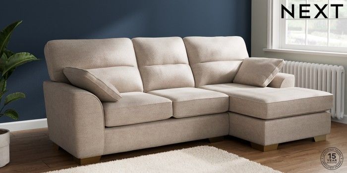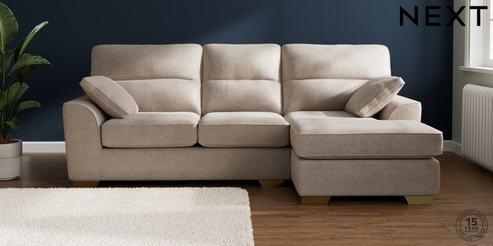 7.2.10 Stamford Highback Medium Sofa Chaise - Right Hand Boucle Chenille Light Natural Large Square Angle - Brushed Brass | Made Click here to use our website with more accessibility support, for example screen readers