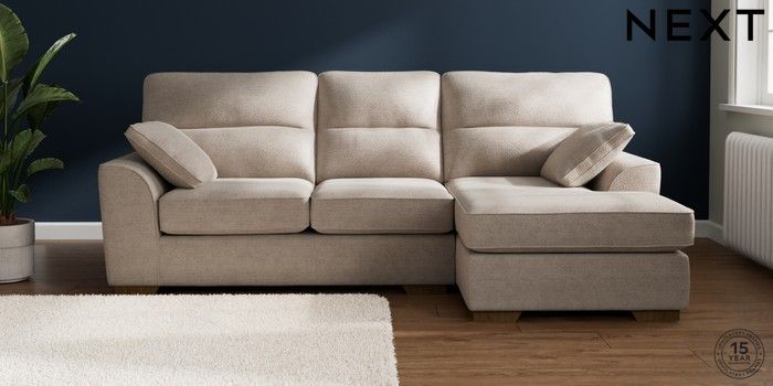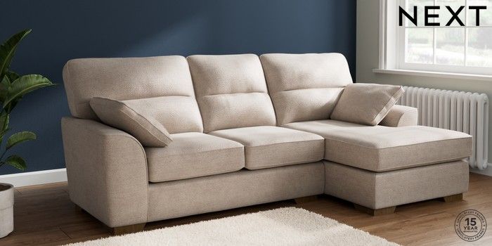 7.2.10 Stamford Highback Medium Sofa Chaise - Right Hand Boucle Chenille Light Natural Large Square Angle - Mid | Made Click here to use our website with more accessibility support, for example screen readers