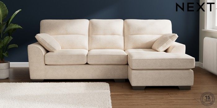 7.2.10 Stamford Highback Medium Sofa Chaise - Right Hand Boucle Chenille Oyster Large Square Angle - Gunmetal | Made Click here to use our website with more accessibility support, for example screen readers