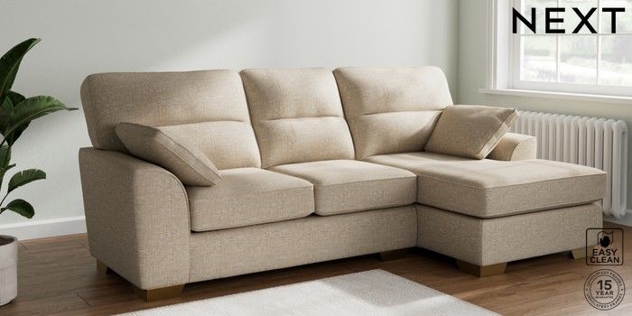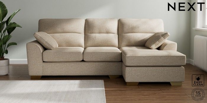 7.2.10 Stamford Highback Medium Sofa Chaise - Right Hand Boucle Weave Easy Clean Dark Natural Large Square Angle - Brushed Brass | Made Click here to use our website with more accessibility support, for example screen readers