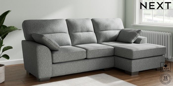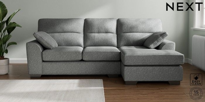 7.2.10 Stamford Highback Medium Sofa Chaise - Right Hand Chunky Boucle Easy Clean Mid Grey Large Square Angle - Gunmetal | Made Click here to use our website with more accessibility support, for example screen readers