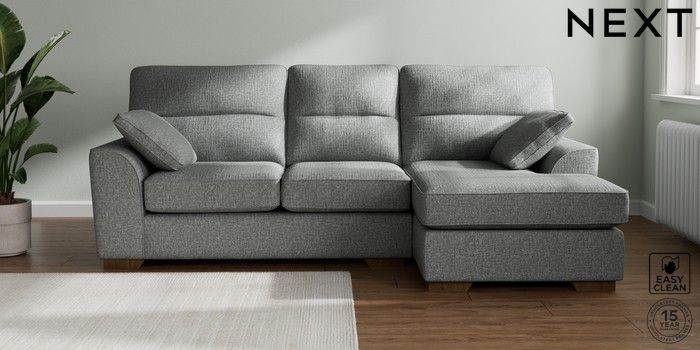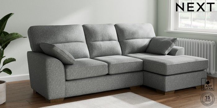 7.2.10 Stamford Highback Medium Sofa Chaise - Right Hand Chunky Boucle Easy Clean Mid Grey Large Square Angle - Mid | Made Click here to use our website with more accessibility support, for example screen readers