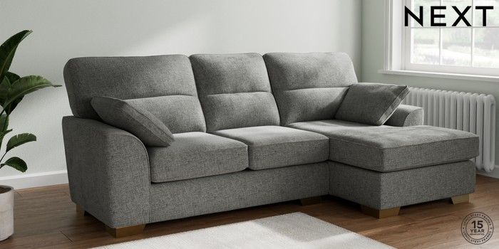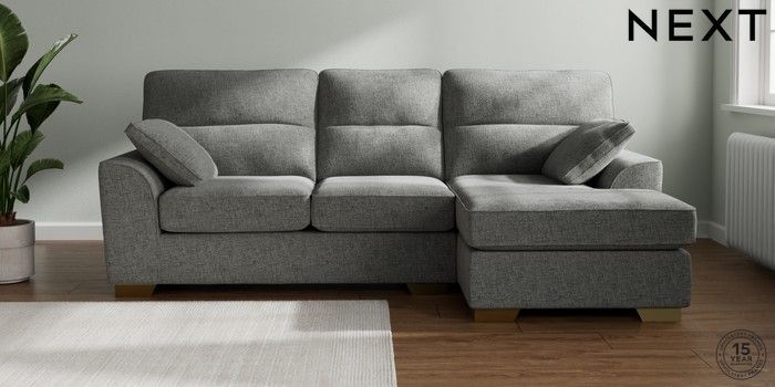 7.2.10 Stamford Highback Medium Sofa Chaise - Right Hand Chunky Chenille Dark Grey Large Square Angle - Brushed Brass | Made Click here to use our website with more accessibility support, for example screen readers