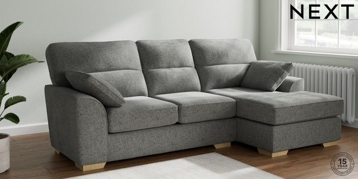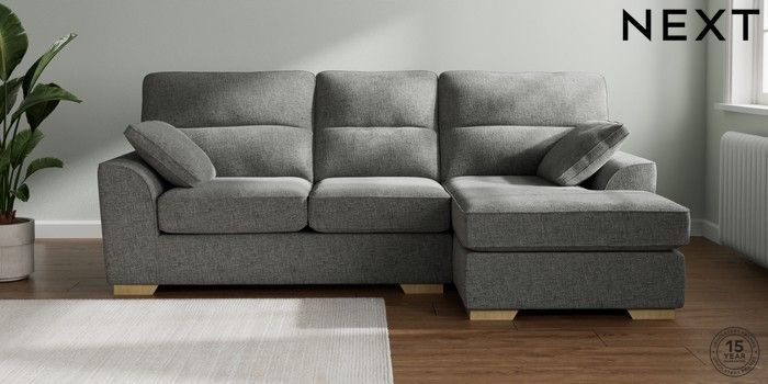 7.2.10 Stamford Highback Medium Sofa Chaise - Right Hand Chunky Chenille Dark Grey Large Square Angle - Light | Made Click here to use our website with more accessibility support, for example screen readers