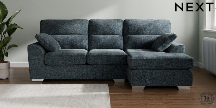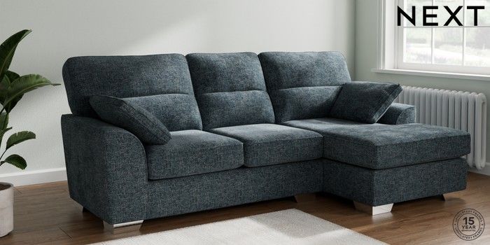 7.2.10 Stamford Highback Medium Sofa Chaise - Right Hand Chunky Chenille Dark Navy Blue Large Square Angle - Chrome Metal | Made Click here to use our website with more accessibility support, for example screen readers