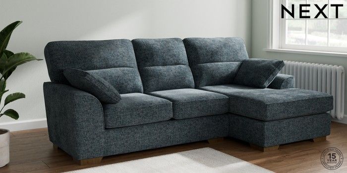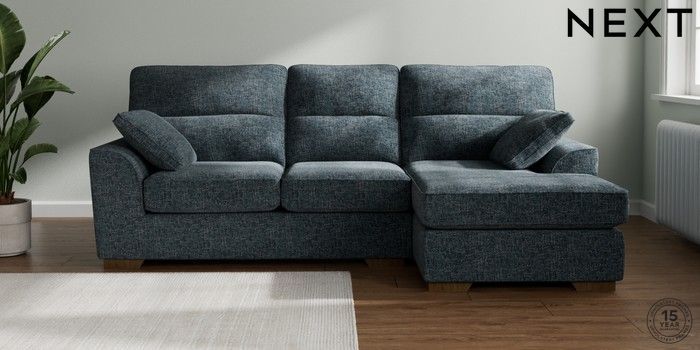 7.2.10 Stamford Highback Medium Sofa Chaise - Right Hand Chunky Chenille Dark Navy Blue Large Square Angle - Mid | Made Click here to use our website with more accessibility support, for example screen readers