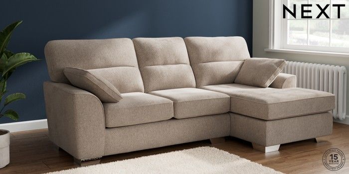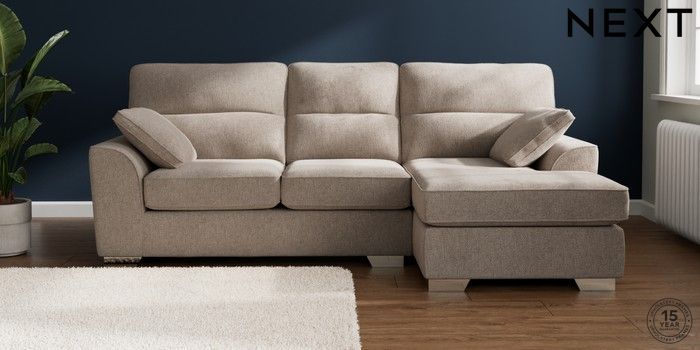 7.2.10 Stamford Highback Medium Sofa Chaise - Right Hand Chunky Chenille Light Dove Large Square Angle - Chrome Metal | Made Click here to use our website with more accessibility support, for example screen readers